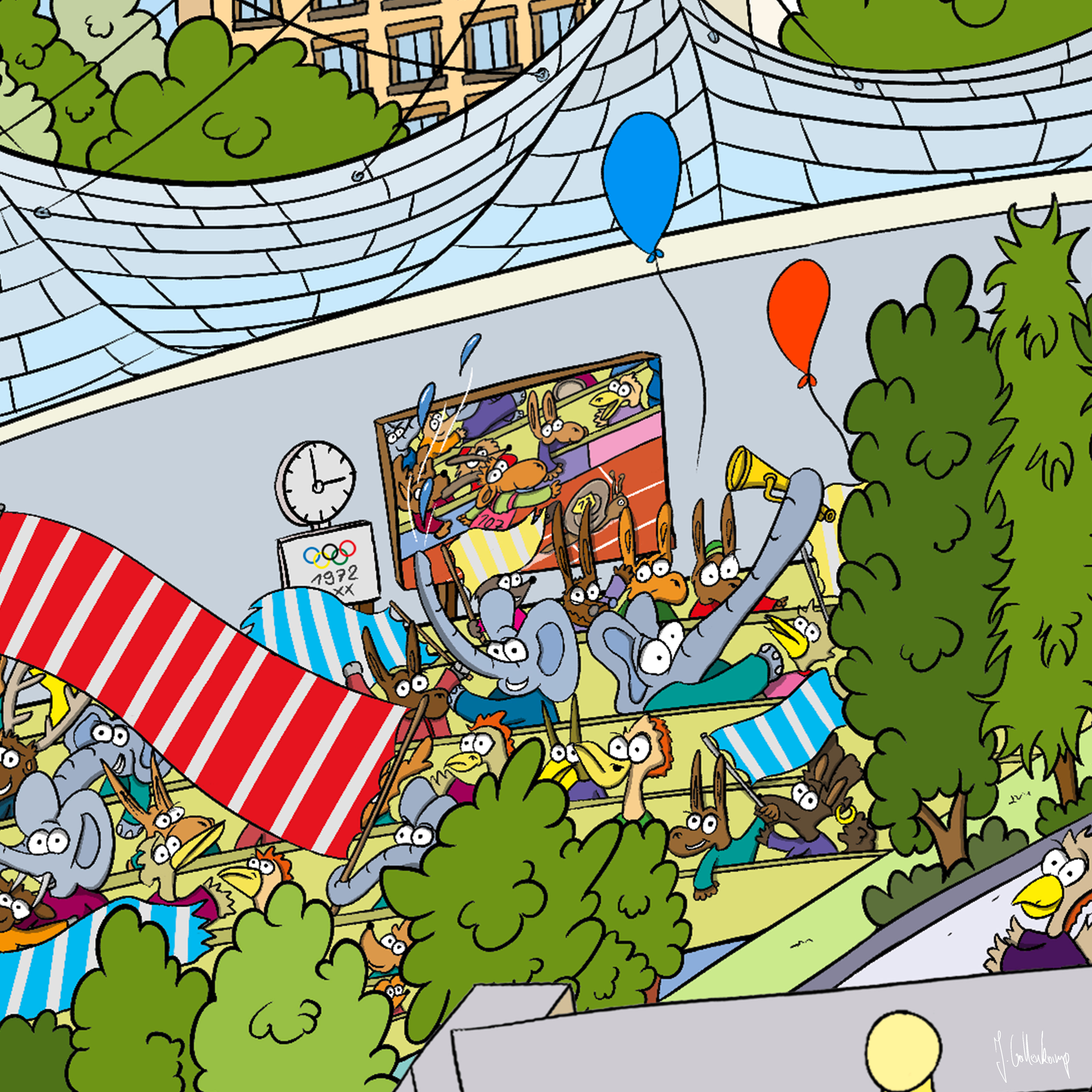 Stadtwimmelposter für das Kinder und Postermagzin "Medizini" im Rahmen vom 50 Jährigen Jubiläum. Im Magazin ist dieses Wimmelbild als Such und Rätselposter erschienen im Format DinA2. Dabei wird die Großstadt München in einem quirligen Wimmelbild präsentiert.